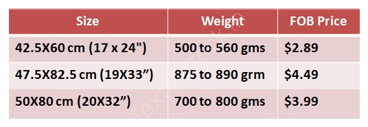 | Size | 42.5X60, 47.5X82.5, 50X80 cms |
