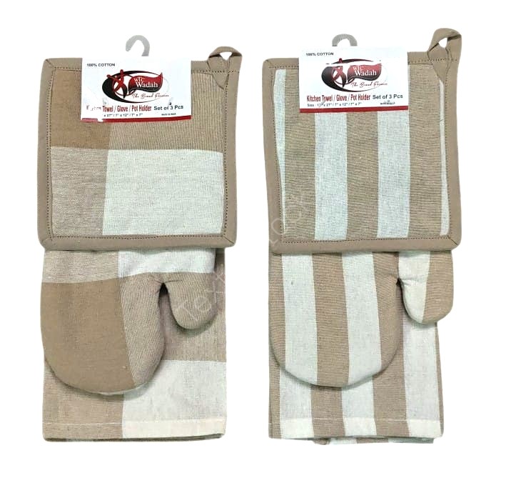Exclusive Offer # 3182- 100% Cotton 3 Pc Set-Kitchen Towel, Glove & Potholder Stock Available at Heavy Discounts ⭐Customized packing available ⭐No defect Guaranteed. ⭐Fast and reliable shipping. ⭐Third Party Inspection Available |