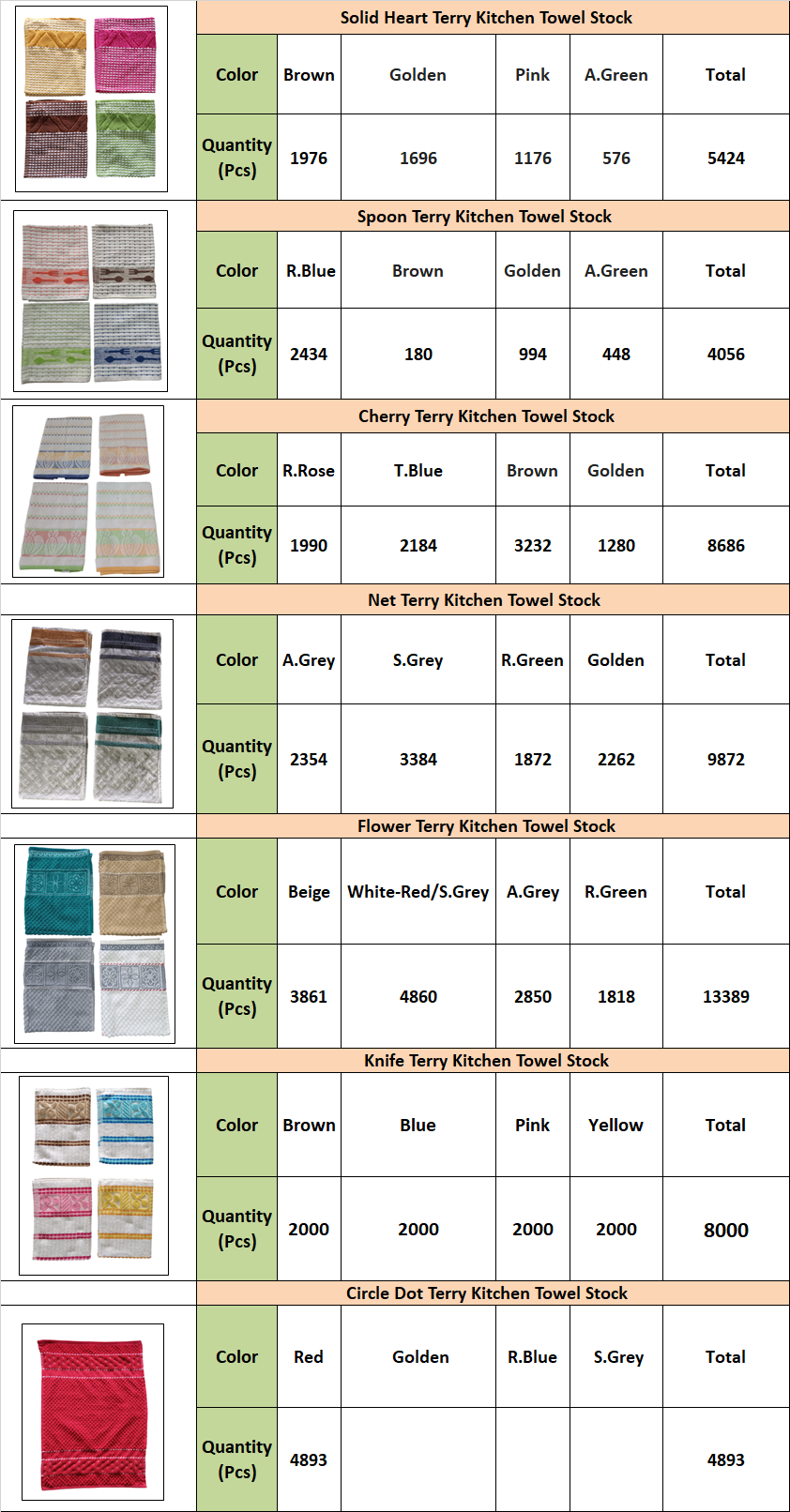 Exclusive Offer # 3160 - 100% Cotton Dobbie Terry Kitchen Towel Stock Available at Heavy Discounts ⭐Customized packing available ⭐No defect Guaranteed. ⭐Fast and reliable shipping. ⭐Third Party Inspection Available