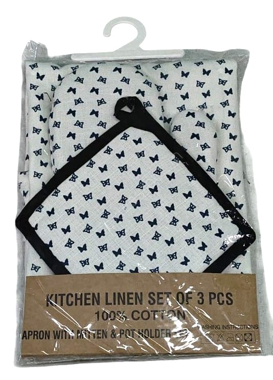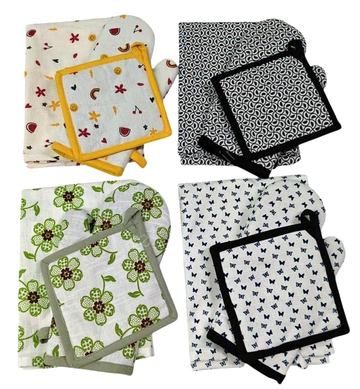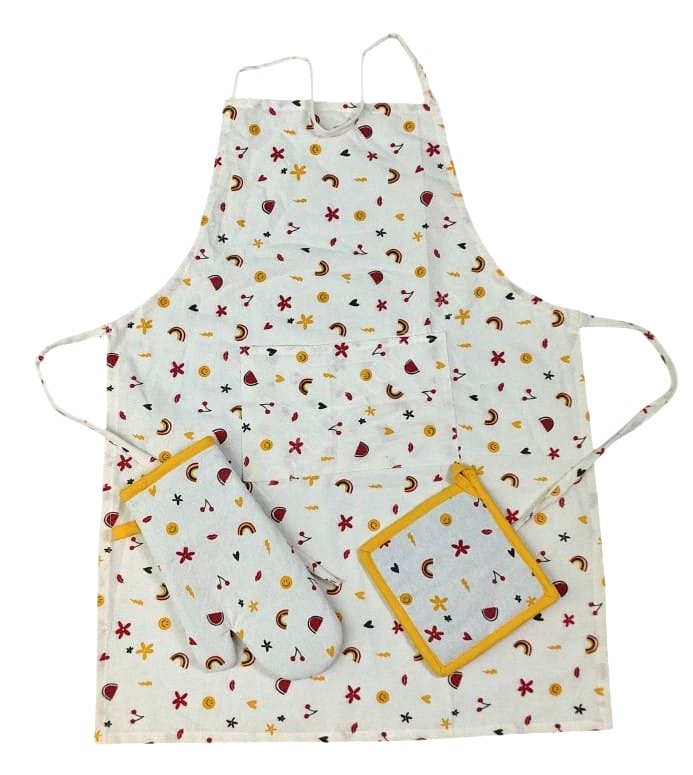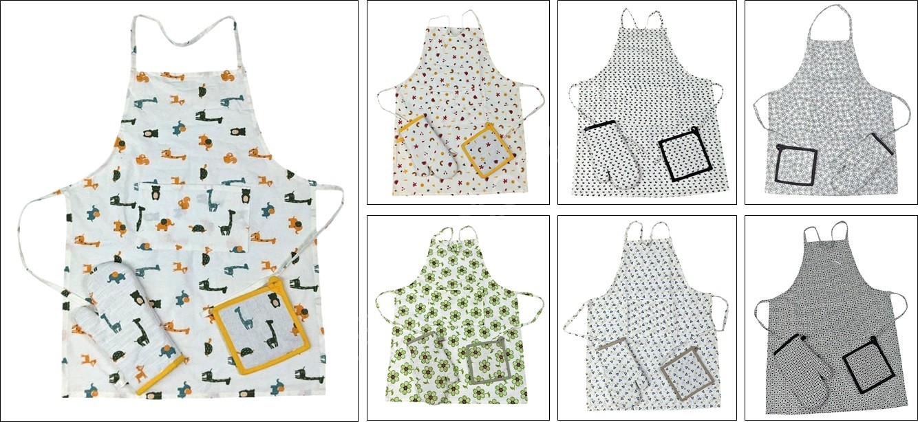 | Size | Apron 60x80cms ,Gloves 17x28cms ,Potholder 17x17cms |