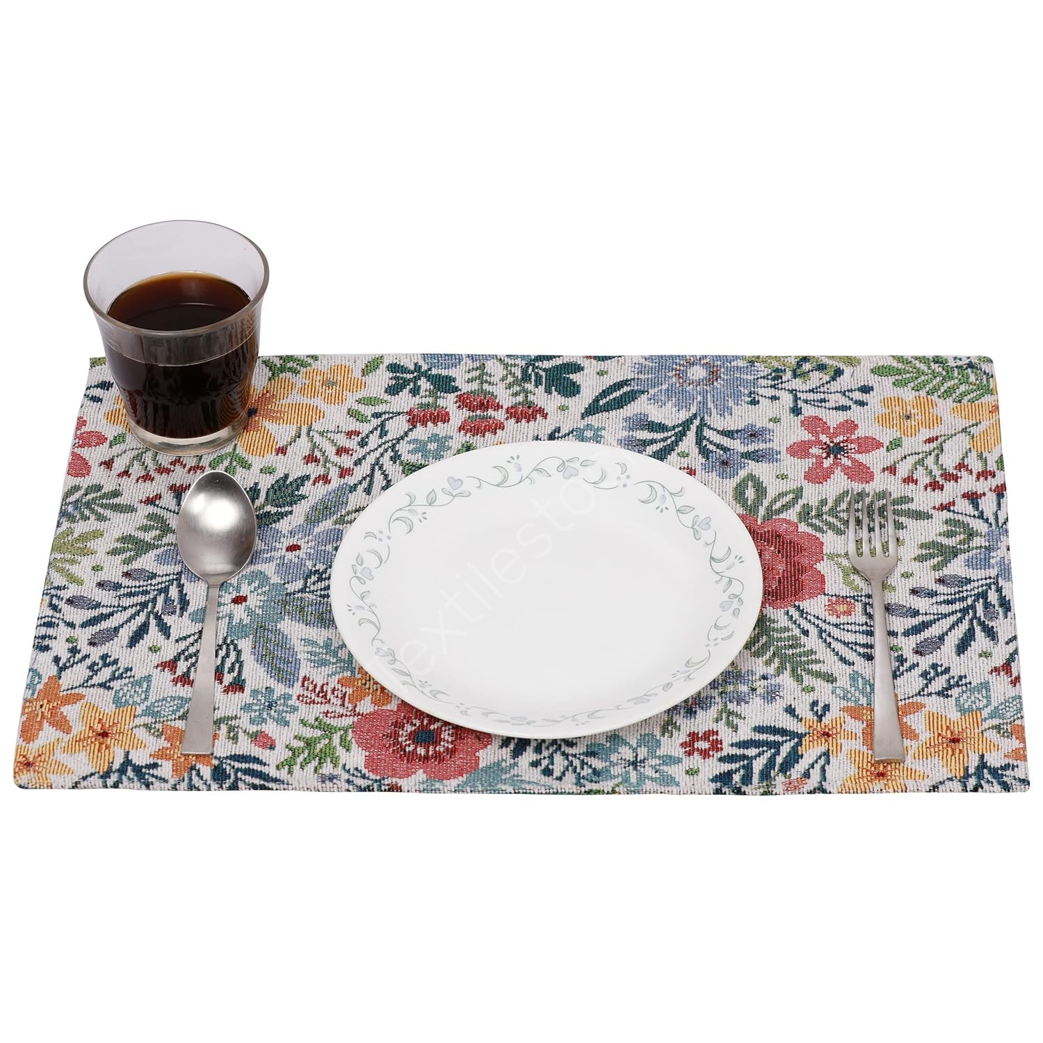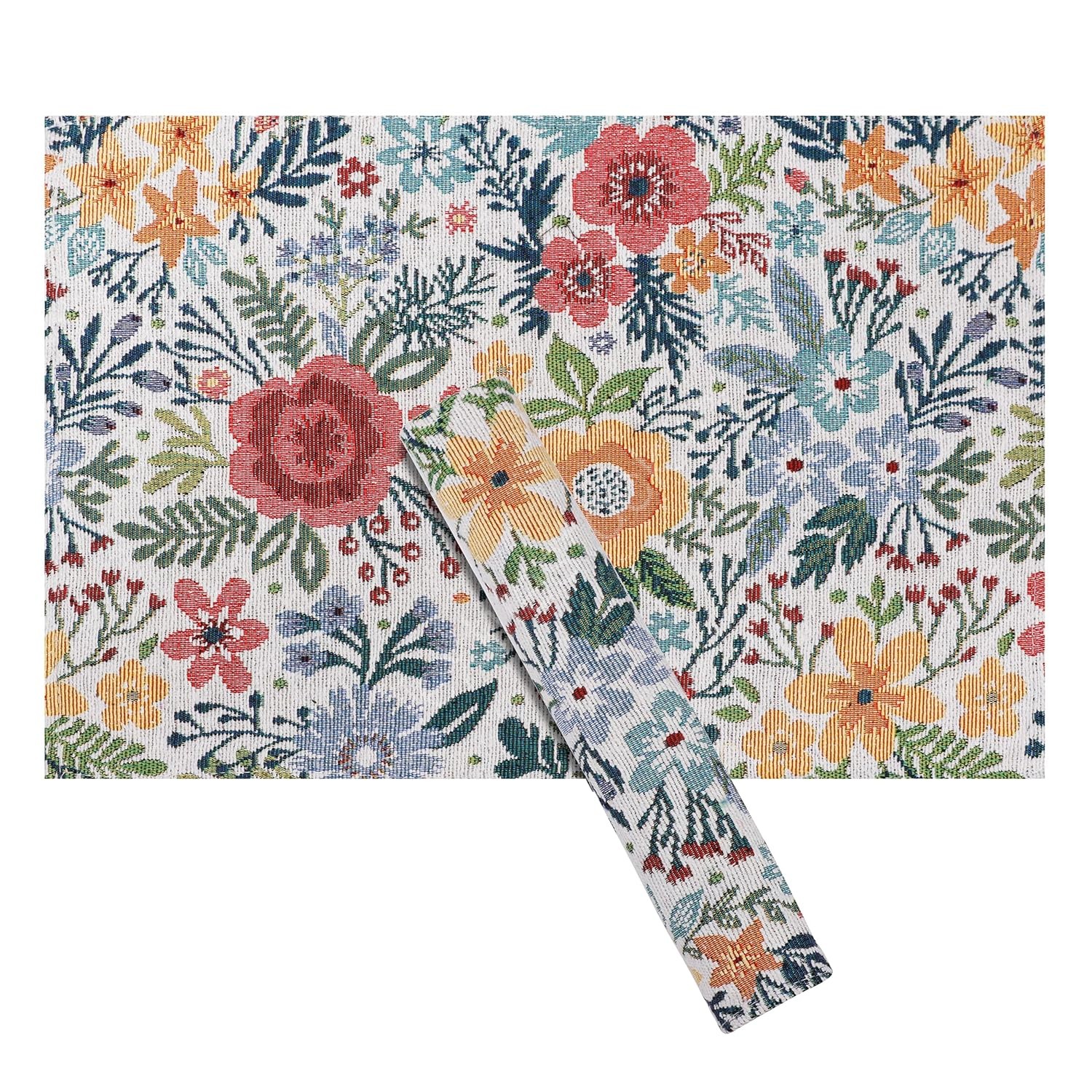 SKU - TSP-627 ASIN - B09CYRRVFX FNSKU - X002H4KGJZ Brand - PRAKARTIK BY INDUARTS Color - Natural Retreat Floral Design Size - 4 PLACEMAT + 180 CM RUNNER |